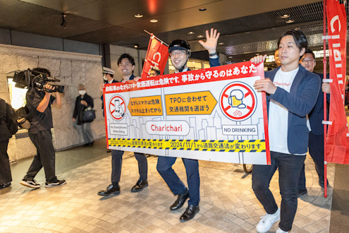 チャリチャリは、サービス拡大とともに、自転車の交通ルール周知やマナーアップ啓発活動に取り組んでまいりました。